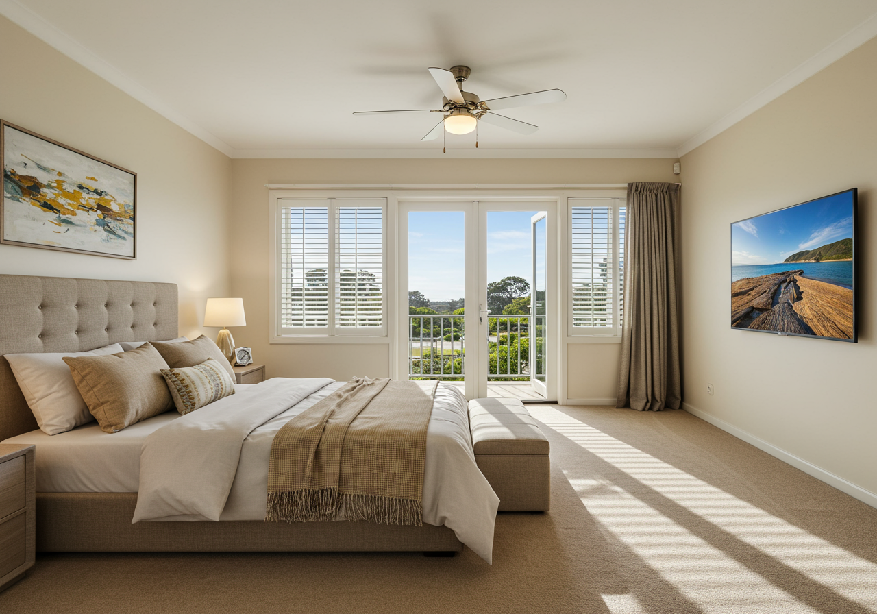 This home has 2 bedrooms plus a den or flex space. The master suite has a wall of windows and private access to the back patio.