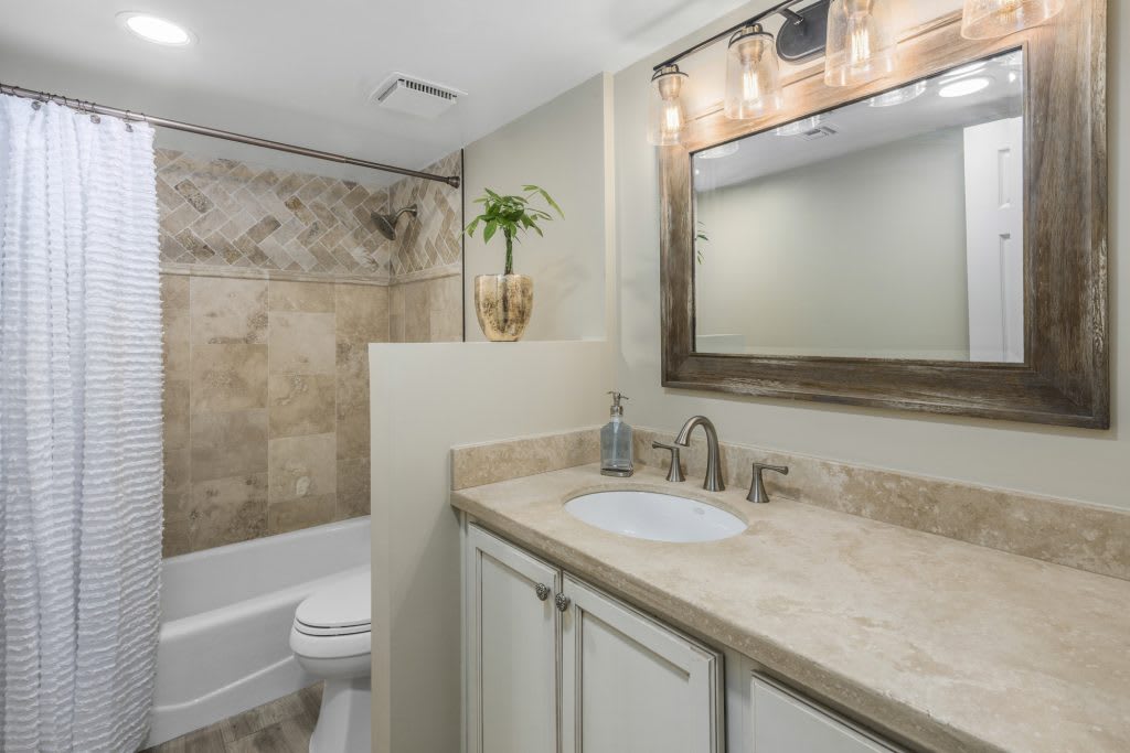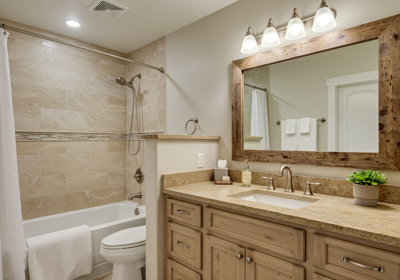 The split floorplan gives the master bedroom extra privacy. It has a sleek bath that is small but efficient and low maintenance. It features an extra-large tile and glass walk-in shower, double vanity, and a nice sized closet.