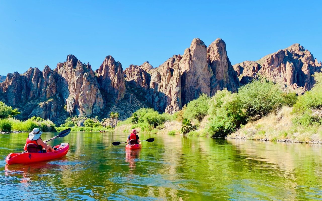The Saguaro Lake Guest Ranch is situated at the bottom of Saguaro Lake’s Stewart Dam along the Salt River. This historic ranch is one of the most scenic guest ranches in the southwest. Spend a night in one of their rustic cabins, attend a cowboy dinner, or rent a kayak with full-service pickup at the end of your trip. Or rent a tube with Salt River Tubing to float down the river for a 2-5 hour trip.