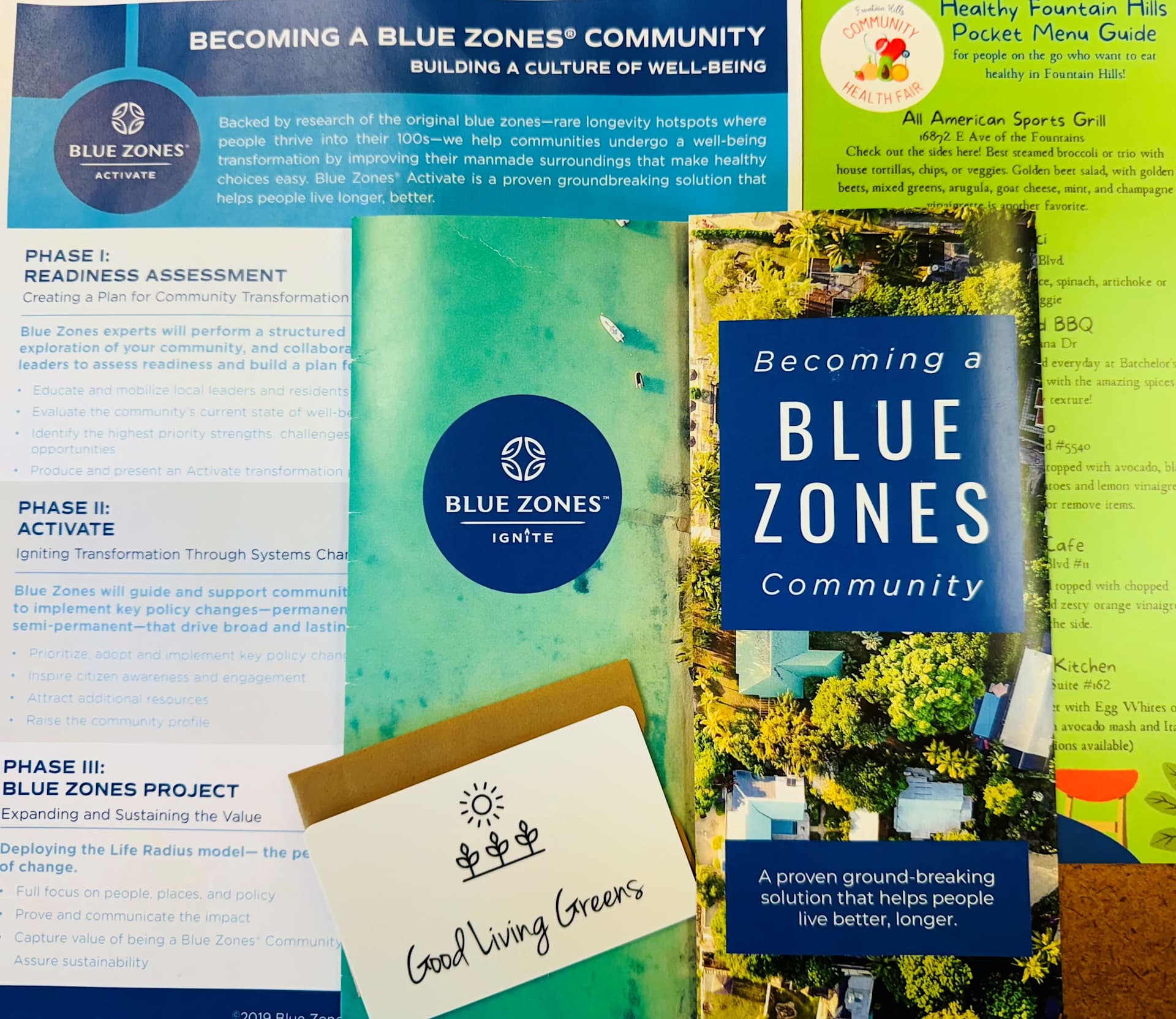 Fountain Hills already boasts several qualities that align with Blue Zone principles. Our community enjoys beautiful natural surroundings, numerous outdoor recreational opportunities, and a strong sense of community. With wonderful organic goods available at Good Living Greens, miles of hiking and biking trails, and a huge volunteer community where everyone can find a place to connect and belong, Fountain Hills has the foundation for Blue Zone living. However, becoming a recognized Blue Zone requires intentional efforts to enhance these qualities further.