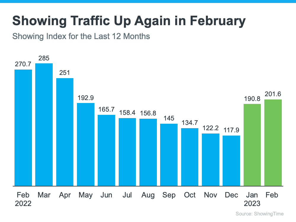 As the graph shows, the first two months of 2023 saw a noticeable increase in buyer traffic. That’s likely because the limited number of homes for sale kept shoppers looking for homes even during colder months.