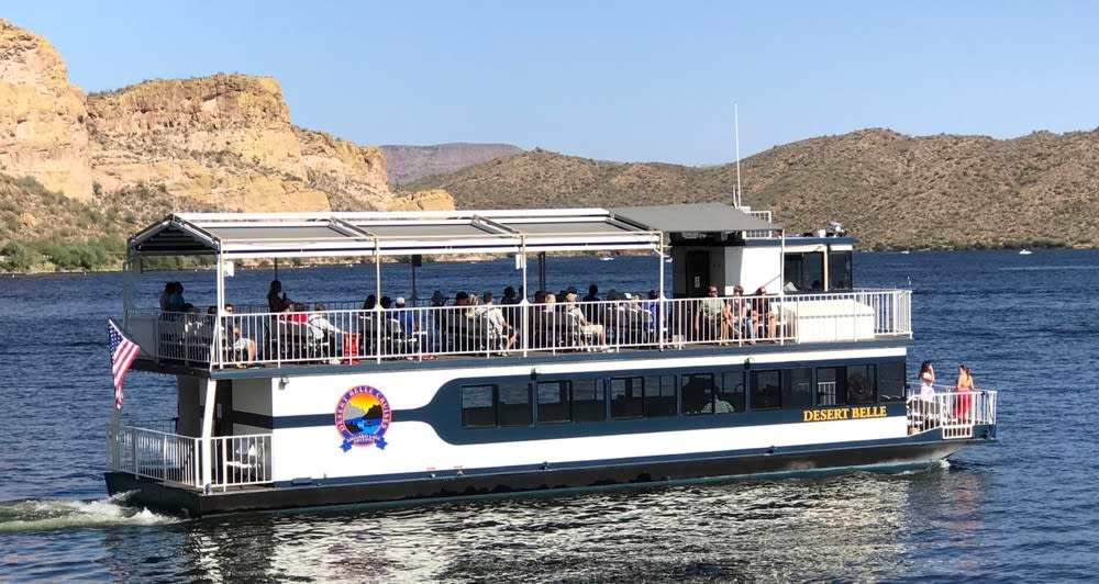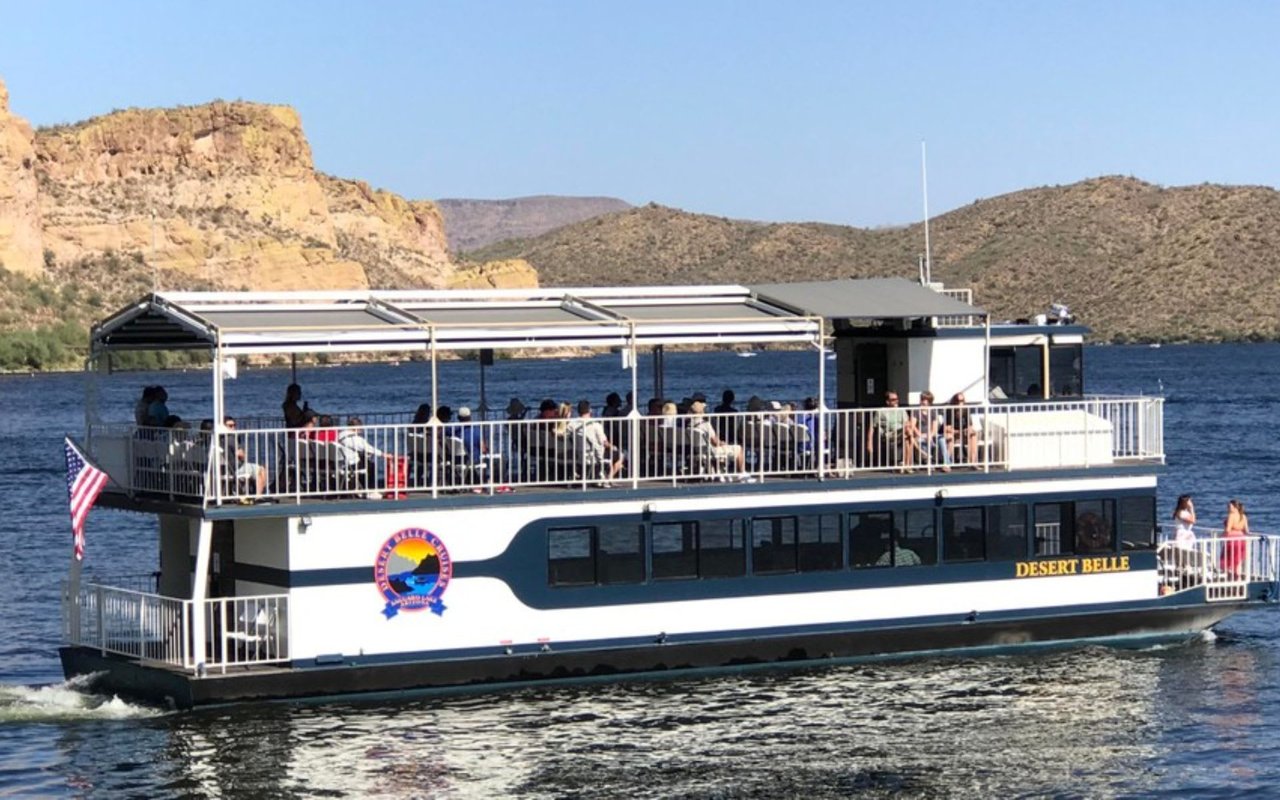 Originally launched in 1964, the Desert Belle has been cruising the waters of Saguaro Lake for over fifty years.
