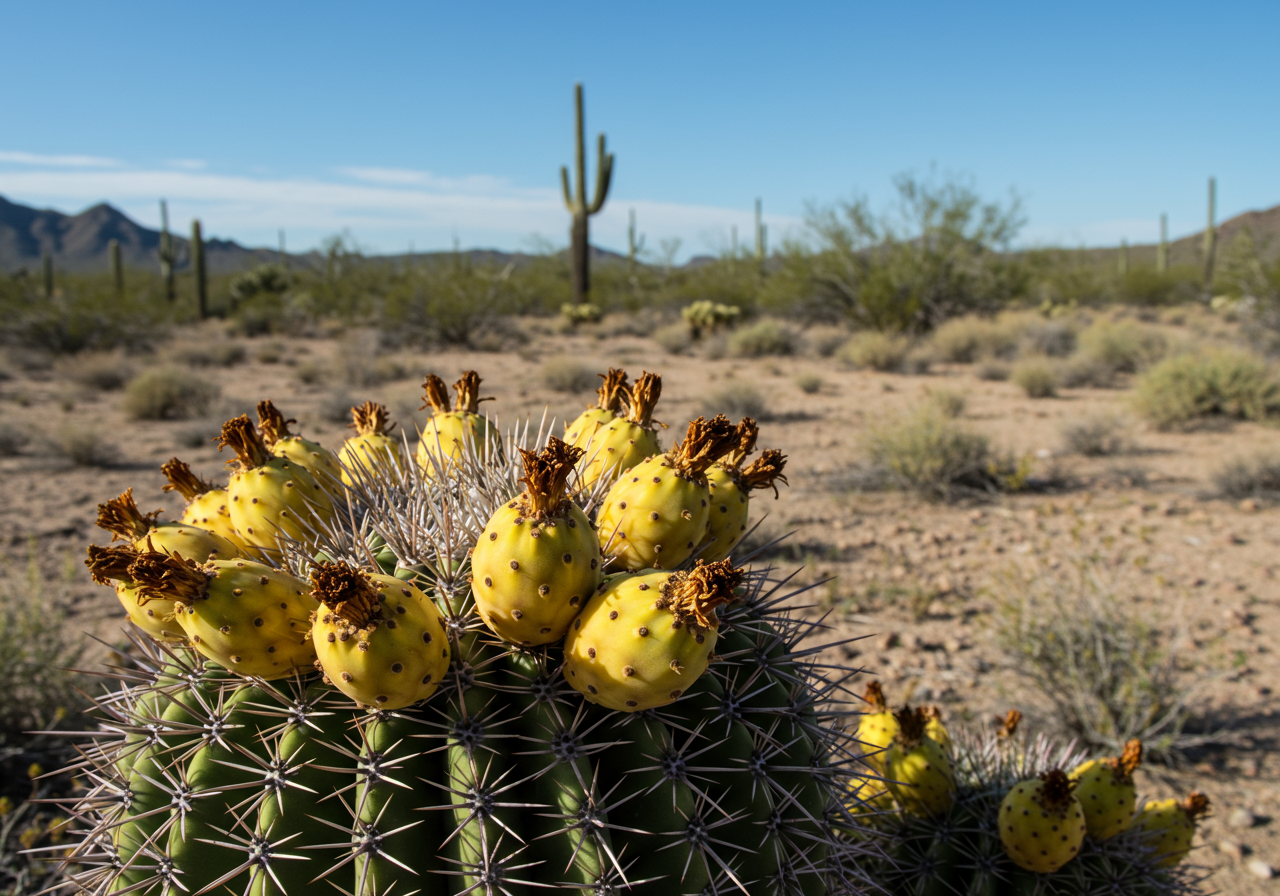 Barrel fruits last a long time on the cactus before they begin to decompose.