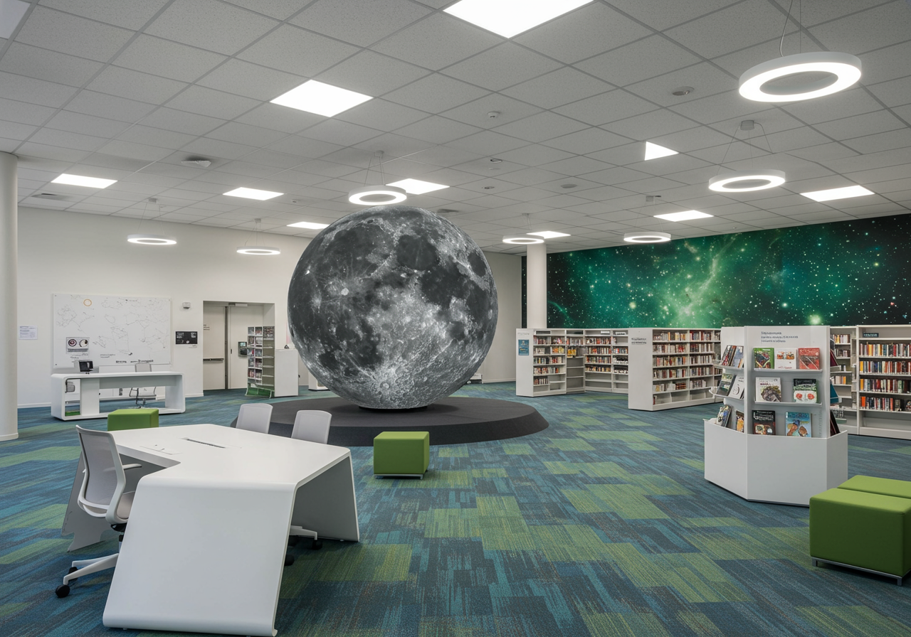 The planetarium, a Swedish dome design, combines high-tech sights and sounds to immerse students in the wonders of astronomy. The space is equipped with interactive wallpaper that connects with iPads and QR codes, as well as a 105-inch touch TV that accommodates up to 40 students.
