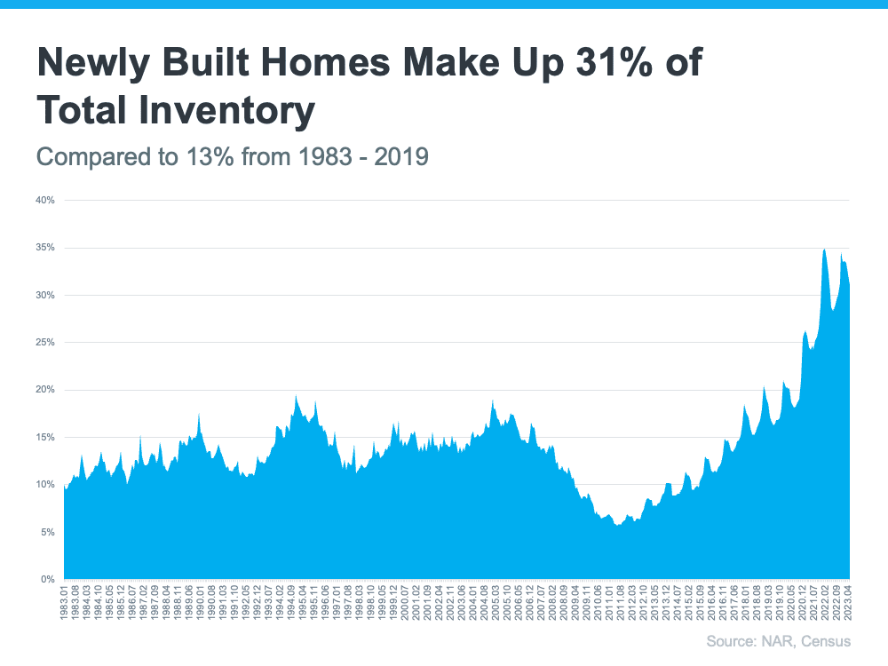 Don’t overlook this growing market segment and risk missing out on great opportunities to find your ideal home. Since new home construction accounts for roughly 31% of the total for sale inventory, you could be cutting nearly one in three options from your search if you don’t consider newly built homes.
