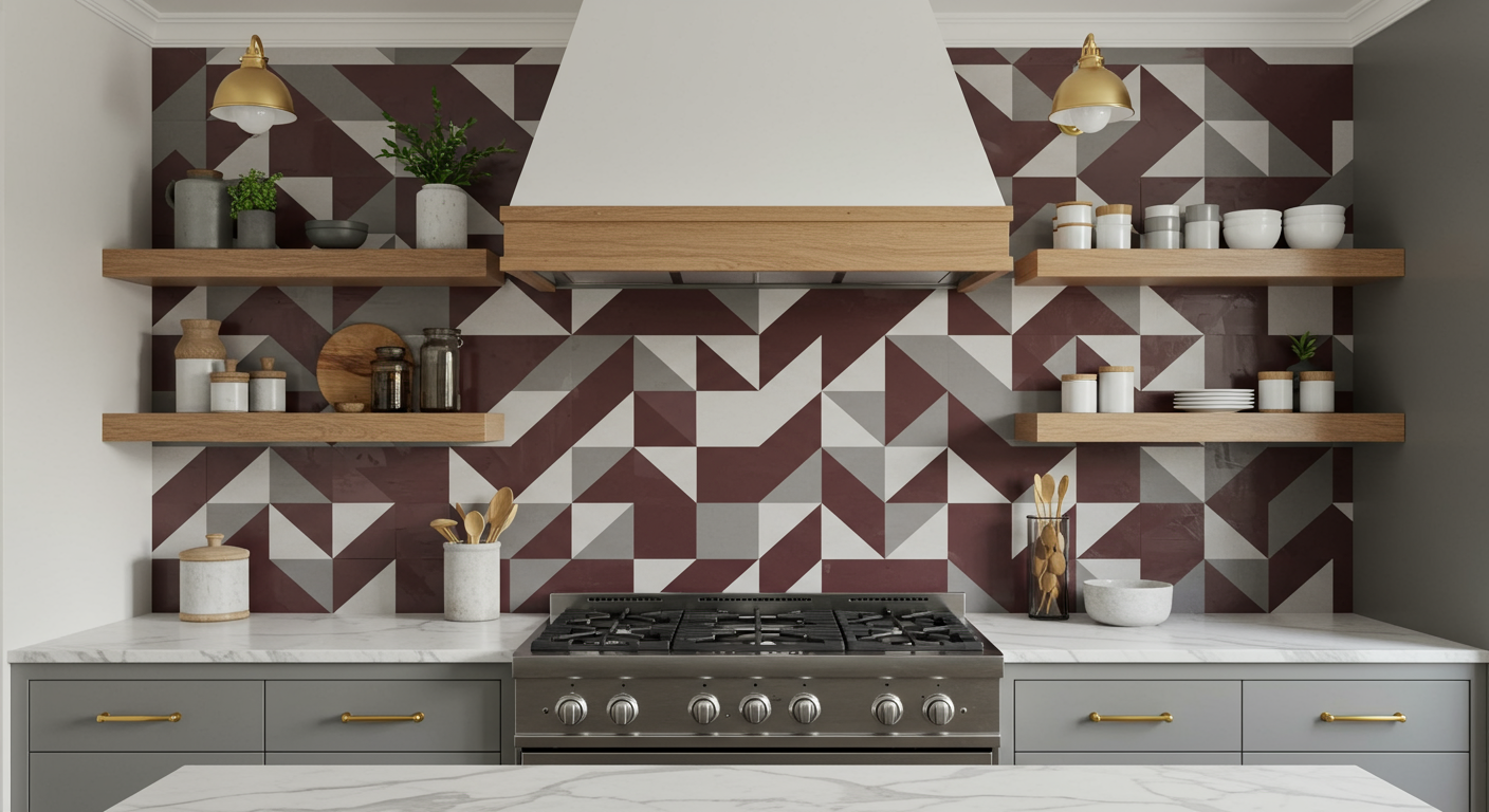 Bee Hive Medley is the perfect eye-catching design to display in your kitchen or bathroom. Shown in Sun Marsala, this magenta-hued color adds a pop of vibrant color to your space.