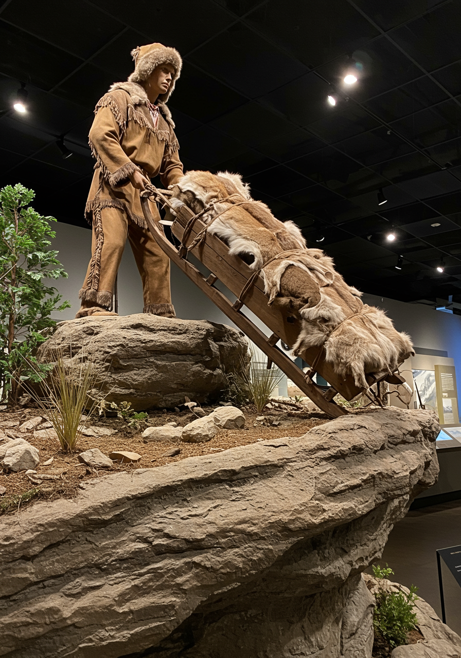 New additions include a life-size Sonorasaurus painted on the east wall, a mountain lion perched on a rock wall, a trapper working at collecting beaver pelts, and archaeologists examining recently unearthed pottery. These vignettes add dimension and character to a dramatically reimagined gallery space.