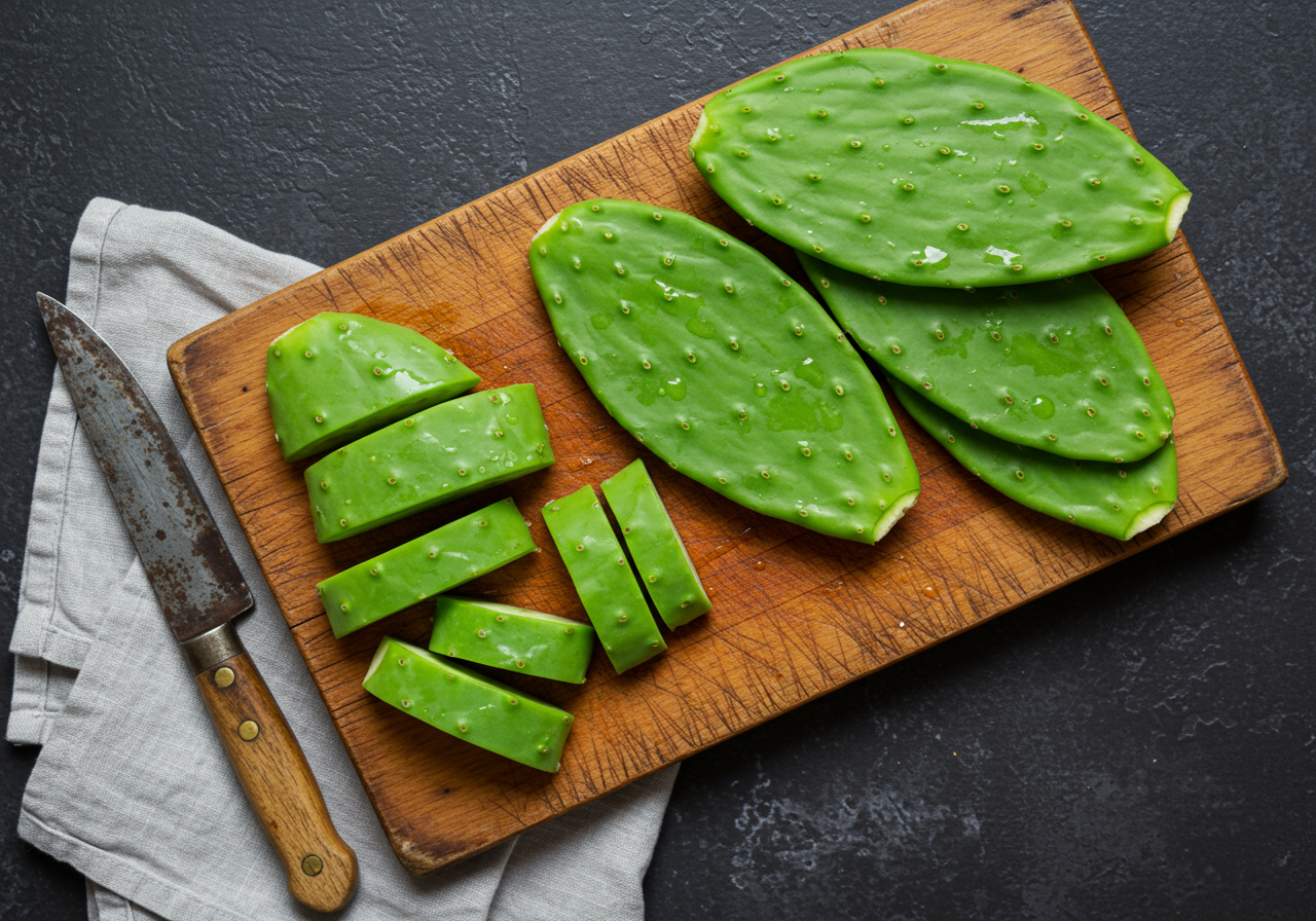 Leaves of cactus nopales, used as a Mexican food and drink ingredient.
